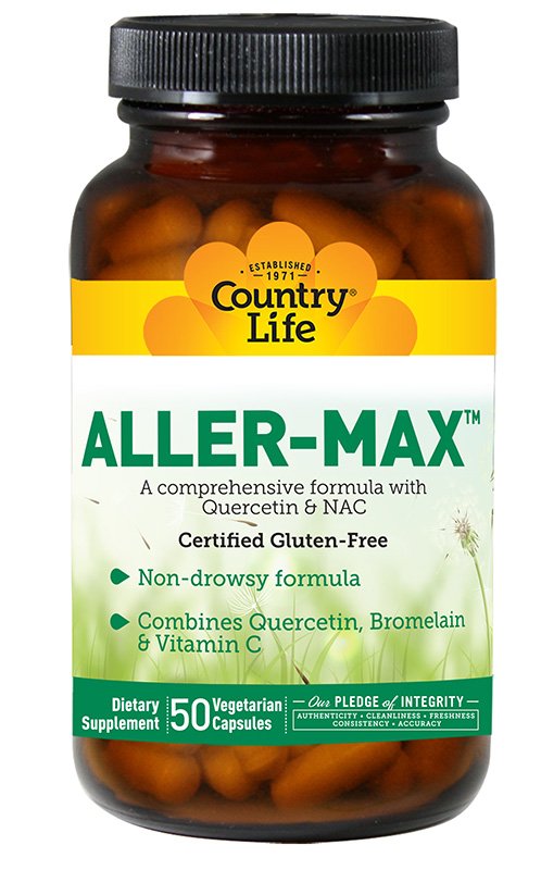 Country Lifes Aller-Max is a unique complex based on the key ingredients of Quercetin, Bromelain, and Vitamin C. Quercetin is a naturally occurring non-citrus bioflavonoid derived from flower buds. Bromelain is an enzyme derived from pineapple stem. It helps to fight allergies and to boost the immune system.